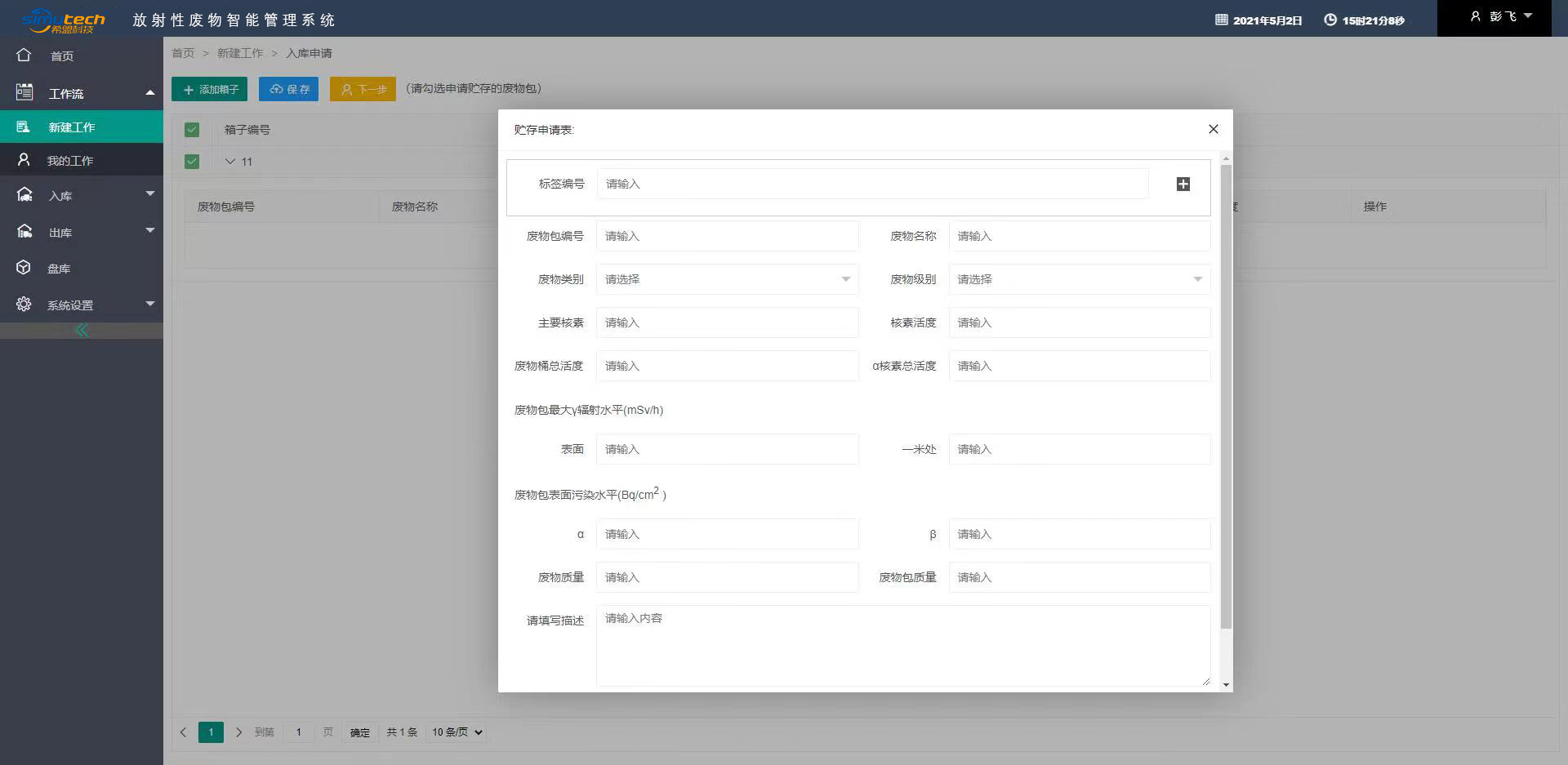 基于手持终端采集的装箱数据传输到电脑后,用户在线上发起入库审批申请,确保废物实际入库。